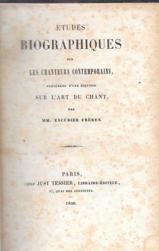 Etudes biographiques sur les chanteurs contemporains, precedé d'une esquisse sur l'art du chant