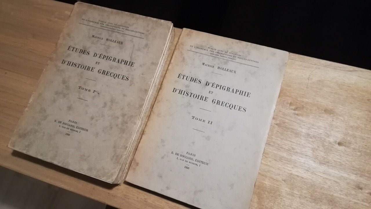 Holleaux - Etudes d'?©pigraphie et d'histoire grecques 2 vol De Boccard - Prima edizione 1938 Libro in ottime condizioni, minimi segni del tempo: ingiallito, dorsi bruniti, vol I dorso rigato e brunito. Non esitate a contattarci per altre foto o richieste. Saremo lieti di soddisfare ogni vostra esigenza.