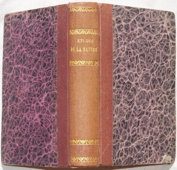 In 16. Dim. 18,5x13 cm. Pp. 563+(1). Bella edizione del 1846 della nota opera del filosofo e naturalista francese Jacques Henri Bernardin de Saint Pierre (1737-1814). Allievo e amico di Rousseau, ebbe molto successo con quest'opera, specialmente dopo che inserì il romanzo "Paul et Virginie" nel 1788 L'autore cerca di dimostrare l'esistenza di Dio attraverso le meraviglie della natura. Bella legatura in mezza tela con titolo in oro al dorso. In buone condizioni. Sottolineature all'interno Copertina in mezza tela con titolo in oro al dorso in buone condizioni generali con lievi usure ai margini e dorso. Legatura in buone condizioni. All'interno le pagine si presentano in buone condizioni con fioriture. Macchia di inchiostro da pag. 415 a 418 con perdita di testo. Beautiful edition of 1846 of the famous work by the french phylosopher and naturalist Jacques Henri Bernardin de Saint Pierre (1737-1814). Student and friend of Rousseau, had a great success with this work, especially after inserted the novel "Paul et Virginie" in 1788. The author tries to demonstrate the existance of God through the faboulous things of nature. Beauitufl half cloth cover with golden title in the spine. In good conditions. Underlinings inside. Half cloth cover with golden title in the spine in good general conditions slightly worn in the edges and spine. Binding in good conditions. Inside pages are in good conditions with foxings. Ink's stain from page 415 until 418 with loss of text.