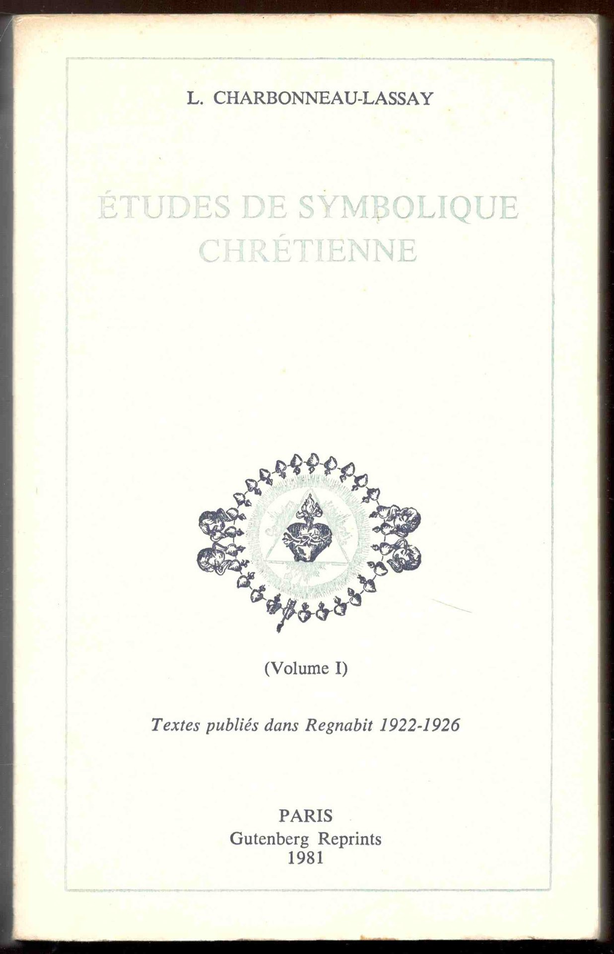 Études de symbolique chretienne (Iconographie et symbolique du coeur de Jesus). Textes publiés dans 'Regnabit' 1922-1926. Volume I