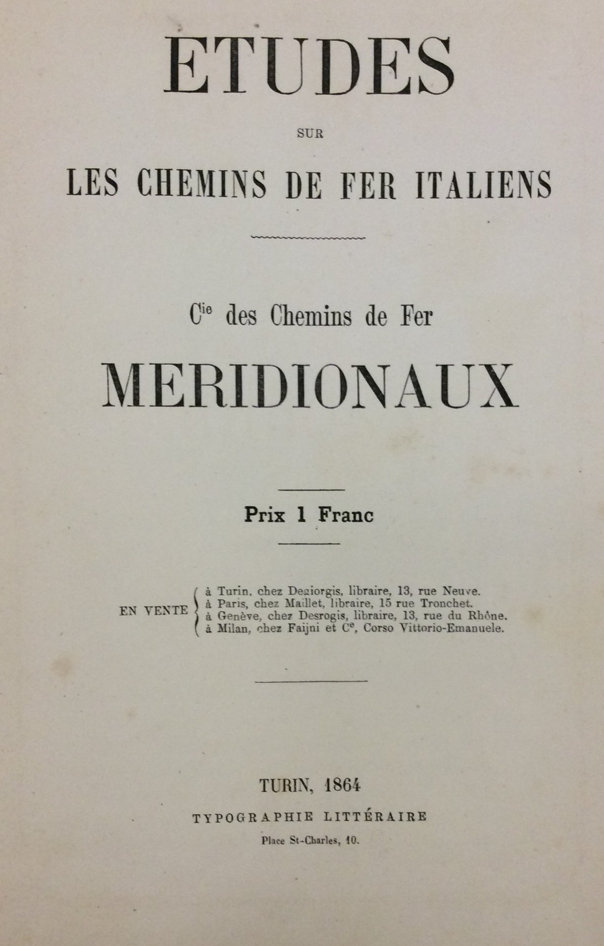 ETUDES SUR LES CHEMINS DE FER ITALIENS. - C.ie des Chemins de Fer Méridionaux.