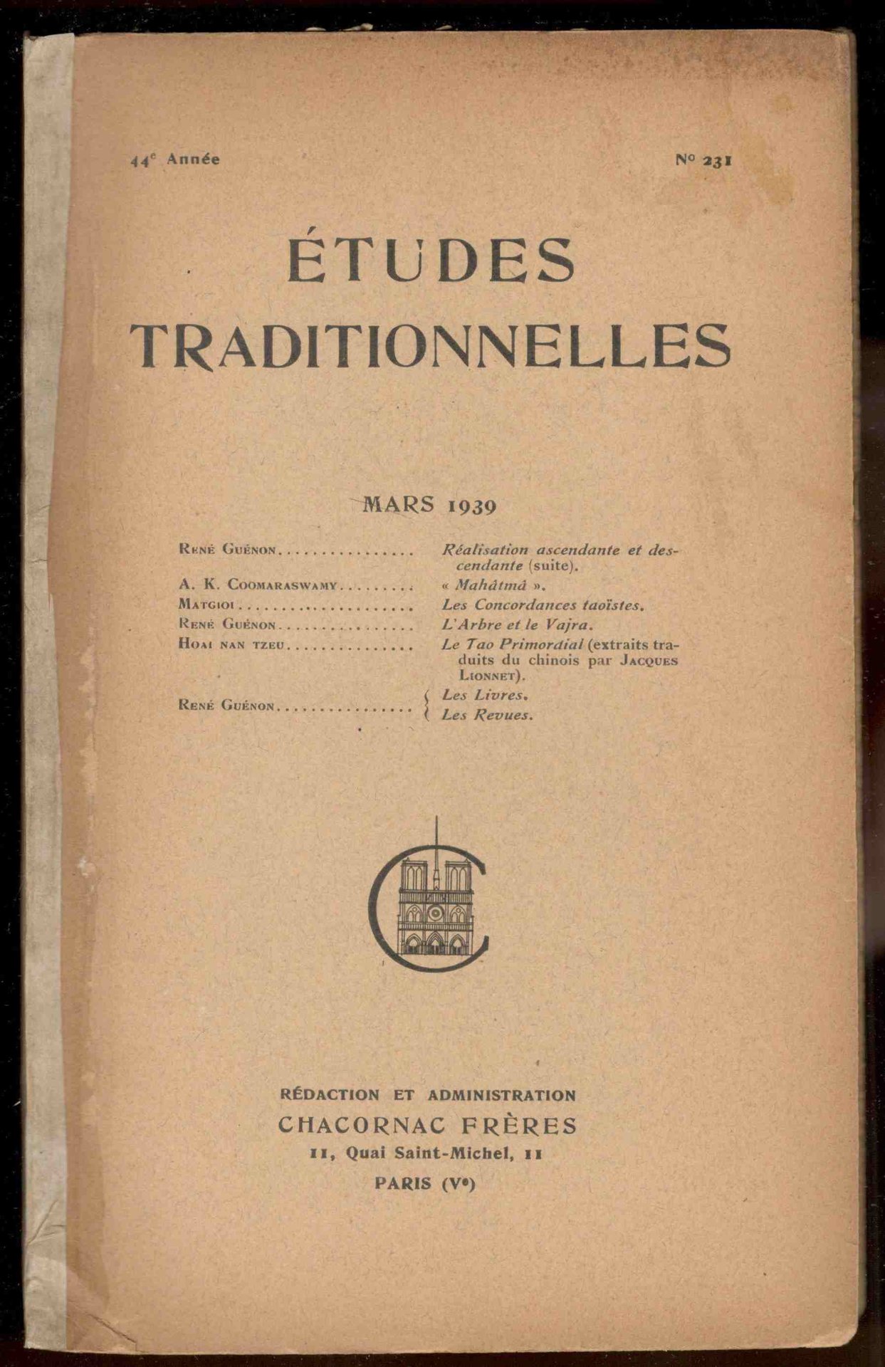 Études Traditionnelles. 44e année. Numero 231. Mars 1939