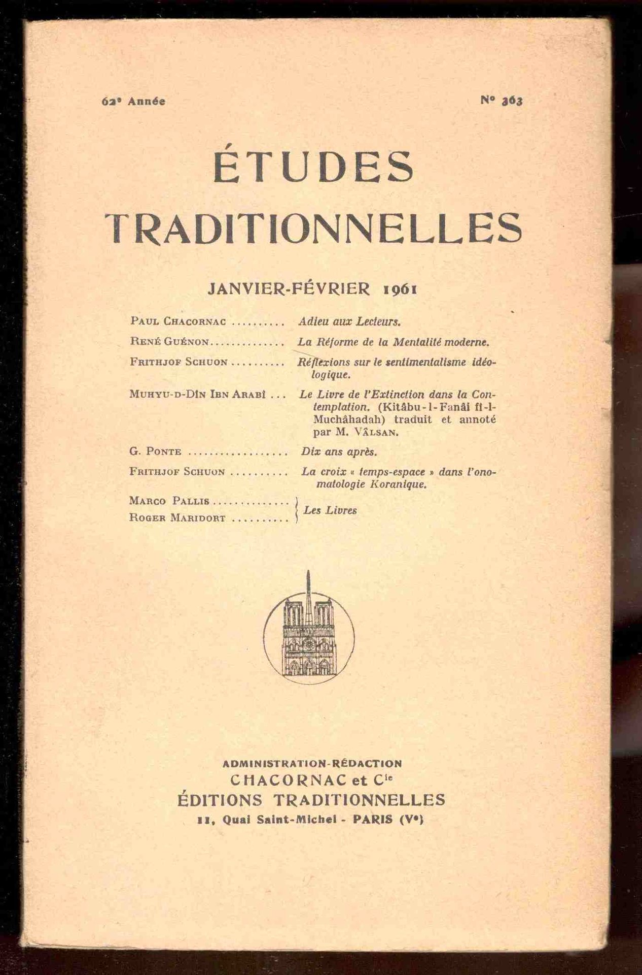 Études Traditionnelles. 62e année. N°363. Janvier-Février 1961