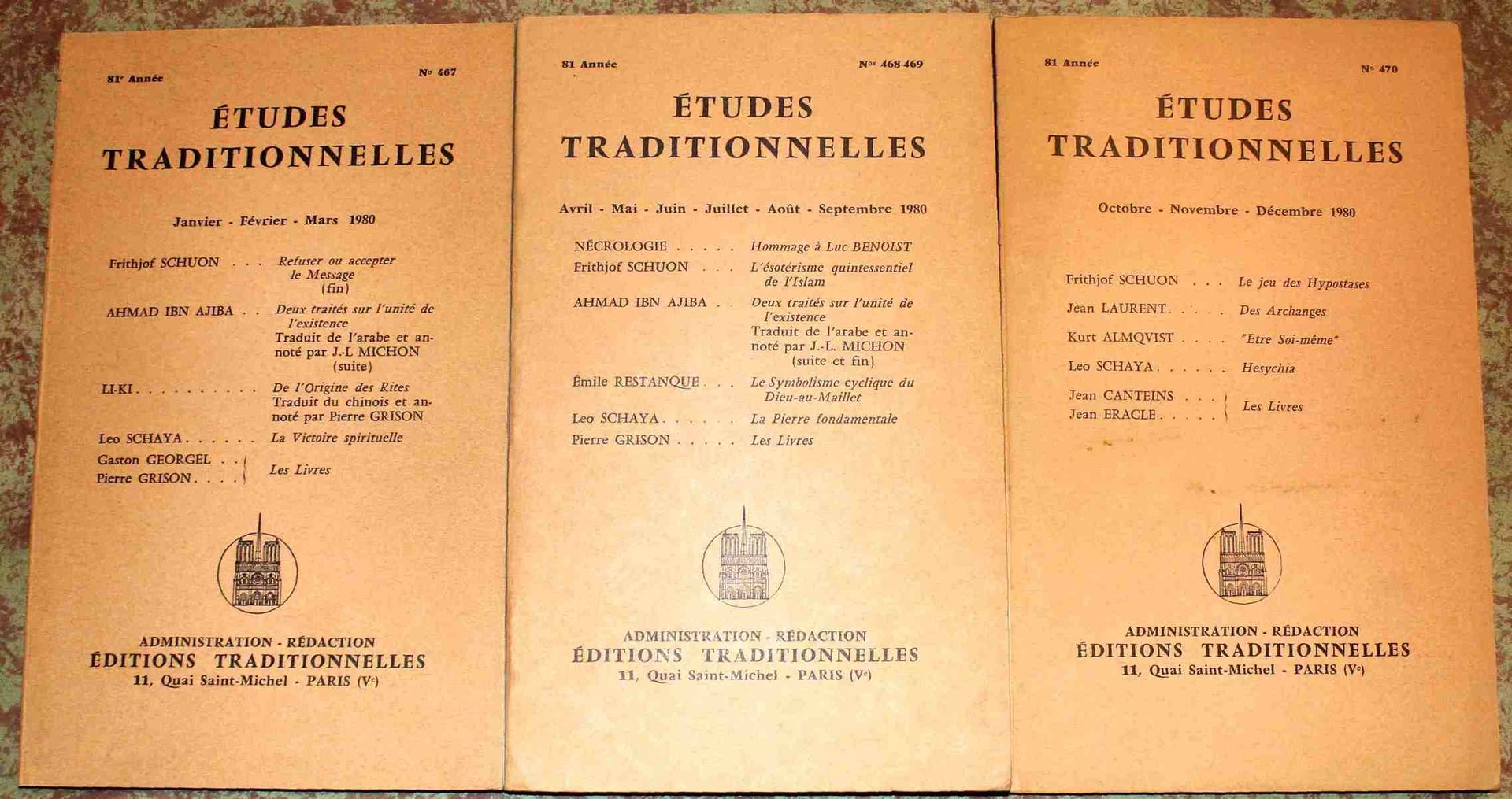 Études Traditionnelles. 81e année. Annata completa 1980. numeri 467 - 468-469 - 470. Tre fascicoli