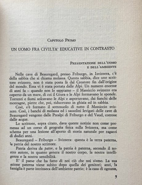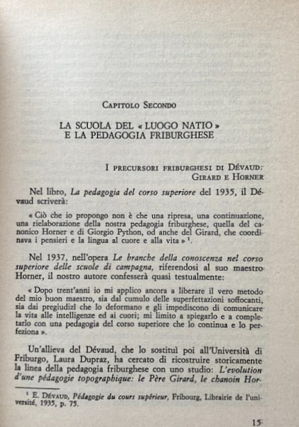 Soggetti: Pedagogia, Monografie, Saggi, Educazione, Didattica, Storia, Attivismo cattolico, Scuola, Cattolicesimo, Educazione cattolica, Attività ricreative e ludiche, Bambini, Infanzia, Scuole infantili Eugène Dévaud, Biografie, Politica, Istruzione, Maria Montessori, Formazione, Lavoro, Dewey, Anni Trenta, Anni Venti, Anni Quaranta, Anni Cinquanta, Anni Sessanta, Teorie educative, Non-attivismo, Correnti di pensiero, Pensiero pedagogico, Rosa e Caterina Agazzi, Ovide Decroly, Sociologia, Filosofia, Marx, Engels, Lenin, Marxismo, Liberalismo, Maria Boschetti Alberti, Infanzia, Binet, Psicologia, Gioco, Adulti, Ambiente sociale, Asilo, Materna, Primaria, Insegnamento, Metodi, Secondaria, Scienza, Etica, Froebel, Freud, Segers, Krupskaja, Wallon, Opera, Claparede, Sviluppo psichico, Intellettuale, Attività motorie, Maestri Cattolici, Fanciulli, Personalità, Concentrazione, Cultura, Interessi, Principi, Creatività, Séguin, Movimento, Attività fisica, Libri Vintage Fuori catalogo, 1876-1942, Ottocento, Novecento, école de campagne, Formation paysanne, Svizzera, Repubblica Elvetica, Friburgo, Herbart, Ziller, Rein, Mario Casotto, Aldo Agazzi, Attivismo svizzero, Maritain, Ferrière, Claparède, Bisogni, Giovanni Bosco, Interesse, Concentrazione, Apprendimento, Applicazione, Boyer, Girard, Horner, Geheeb, Otto, Lietz, Montaigne, Linneo, Dottrens, Tomisti, Lettura, Lezioni, Natura, Democrazia, Libri rari, Bibliografia, Riferimento, Pedagogy, Monographs, Essays, Education, Didactics, History, Catholic activism, School, Catholicism, Catholic education, Recreational and playful activities, Childhood, Kindergartens, Biographies, Politics, Education, Training, Work, Thirties, Twenties, Forties, Fifties, Sixties, Educational theories, Non-activism, Schools of thought, Pedagogical thinking, Sociology, Philosophy, Liberalism, Childhood, Psychology, Game, Adults, Social environment, Kindergarten, Primary, Teaching, Methods, Secondary, Science, Ethics, Work, Psychic development, Intellectual, Motor activities, Catholic masters, Children, Personality, Concentration, Culture, Interests, Principles, Creativity, Movement, Physical activity, Out of print books, Nineteenth century, Twentieth century, Switzerland, Helvetic Republic, Friborg, Swiss activism, Needs, Concentration, Learning, Application, Thomists, Reading, Lessons, Nature, Democracy, Rare books, Bibliography, Reference
