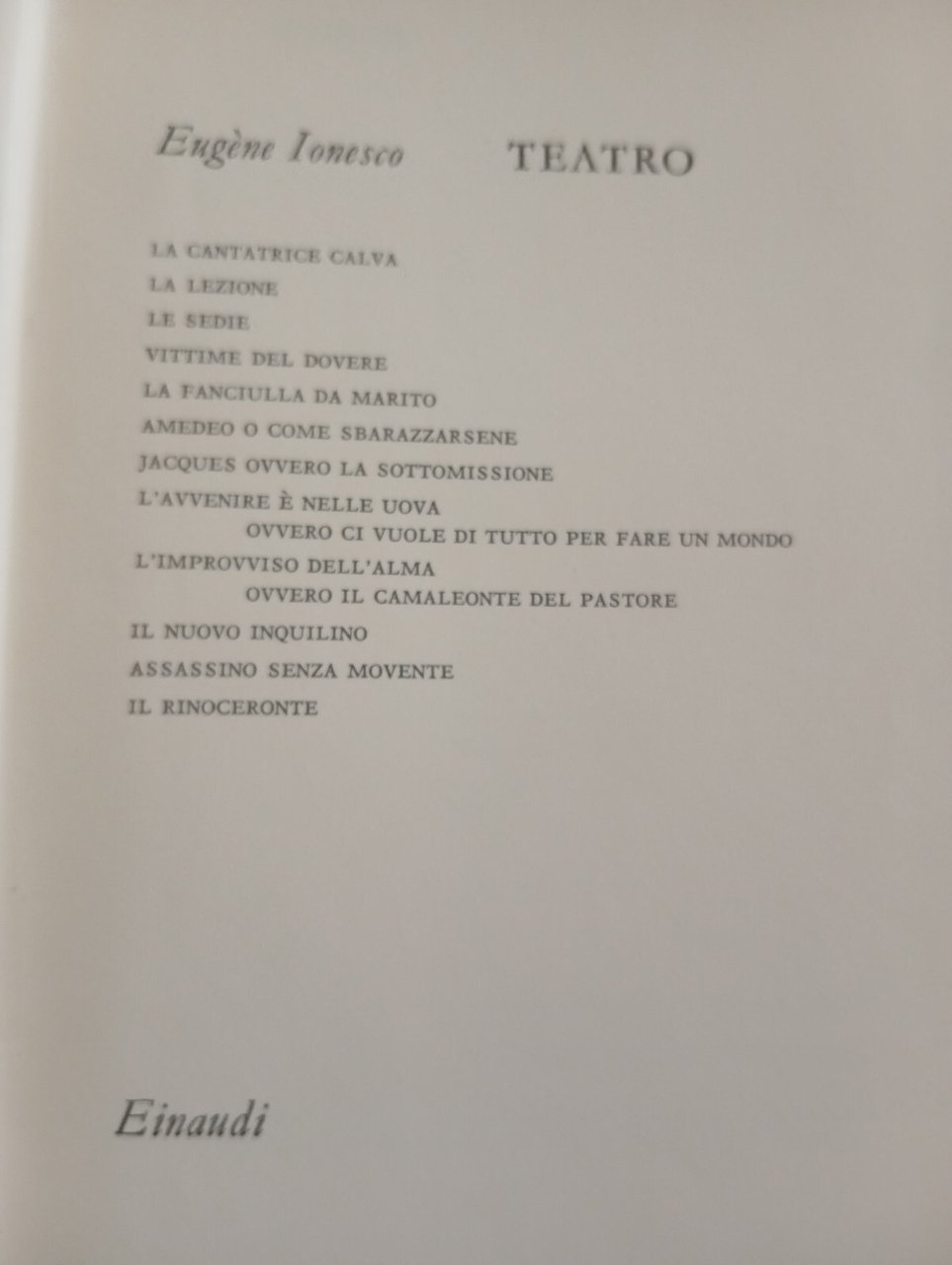 Eugene Ionesco, Teatro, Einaudi, 1961