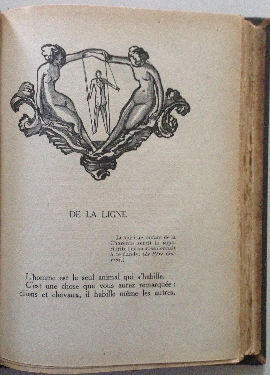 Eugene Marsan, Les Cannes de M. Paul Bourget et Le Bon Choix de Philinte Petit manuel de l'homme élégant Le Divan, Paris 1924; cm. 21x14.5, pp. 262; con ill. in b/n n.t.; cart. ed. mezza pelle con titoli al dorso; testo in lingua francese. Condizioni di conservazione Esemplare in buono stato con leggere tracce d'uso; dorso con alcune abrasioni e minime pieghette e mancanze alle cuffie; interni leggermente bruniti. SETT142.L14191 MT