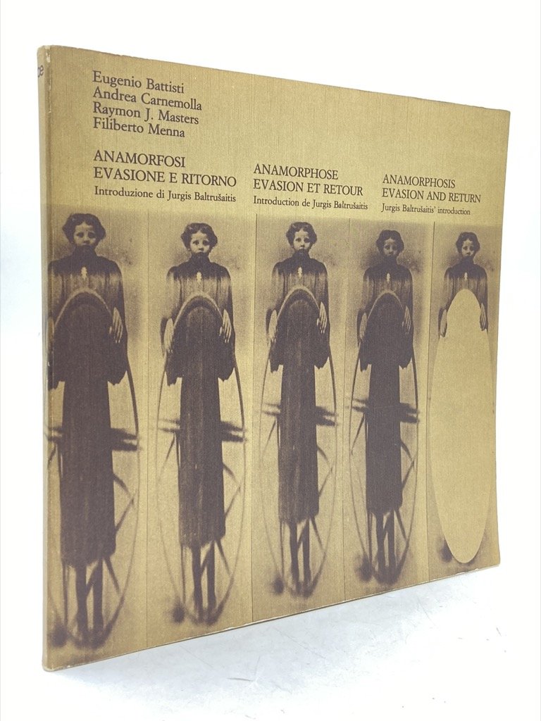 Eugenio Battisti, Andrea Carnemolla, Raymon J. Masters, Filiberto Menna. ANAMORFOSI EVASIONE E RITORNO. Introduzione di Jurgis Baltrušaitis. NAMORPHOSE EVASION ET RETOUR. ANAMORPHOSIS EVASION AND RETURN.