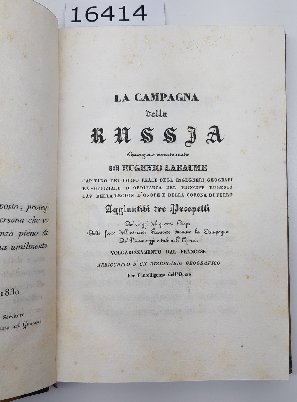 Eugenio Labaume La campagna della Russia due volumi Macerata Mancini Cortesi 1830