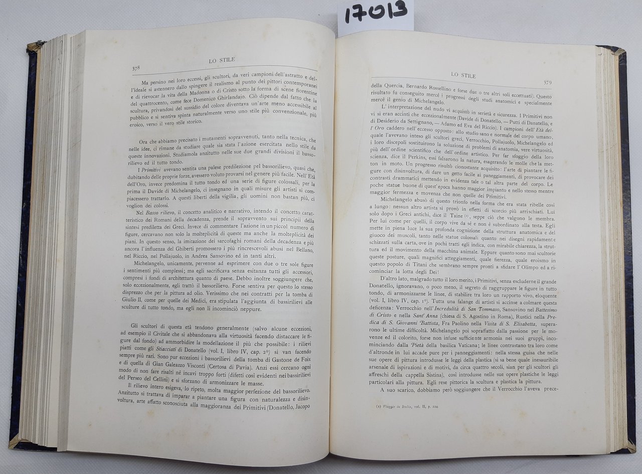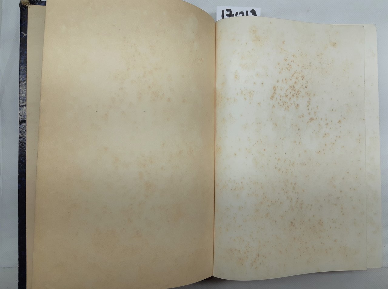 legatura rigida in mezza pelle con piatti marmorizzati con alcune mancanze ai margini, angoli consumati e deformati, dorso con etichetta di catalogazione in pelle rossa con titoli in oro margini del dorso consumati, tagli con fioriture impolverati quelli superiori, alla seconda di copertina ex libris, fioriture diffuse alle pagine interne che non vanno a disturbare la lettura, numero pagine 622 dimensioni , cm 28 x 20 x 4