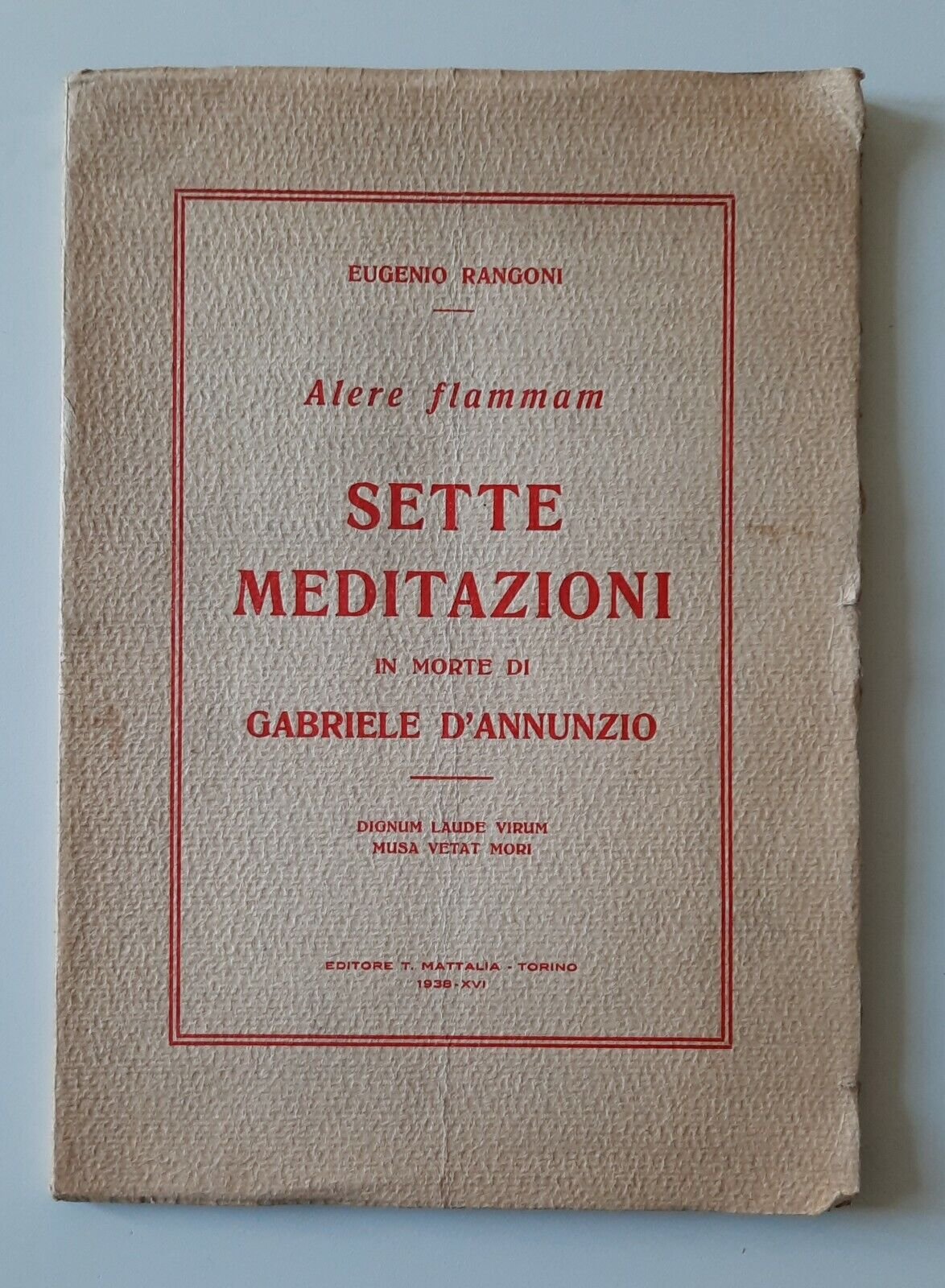 EUGENIO RANGONI SETTE MEDITAZIONI IN MORTE DI GABRIELE D'ANNUNZIO MATTALIA 1938