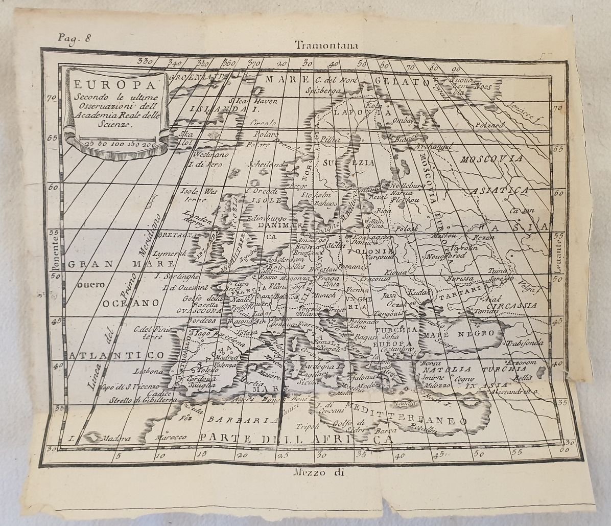 Graziosa mappa del 1750 circa dell'Europa. ATLANTE: Geografia universale - Buffier DIMENSIONI FOGLIO: cm 17x20 DIMENSIONI INCISIONE: cm 14x17,5 EPOCA: 1750 circa CONDIZIONI: Buone. Piegature. Nice map of 1750 circa of Europe ATLAS: Geografia universale - Buffier LEAF DIMENSION: cm 17x20,5 ENGRAVING DIMENSION: cm 14x17,5 DATE: 1750 circa CONDITIONS:Good conditions. Foldings.