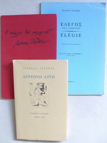? ?. ? [ Eveillés à l'aube. Poèmes - Exemplaire dédicacé] - [ On joint : ] Elegos tou Giorgoi - Elégie. Traduit par Octave Merlier - [ On joint : ] ? ? ? ? [ Le Cycle de l'Horloge avec billet autographe signé accompagnant la traduction par N. Coutouzis ]