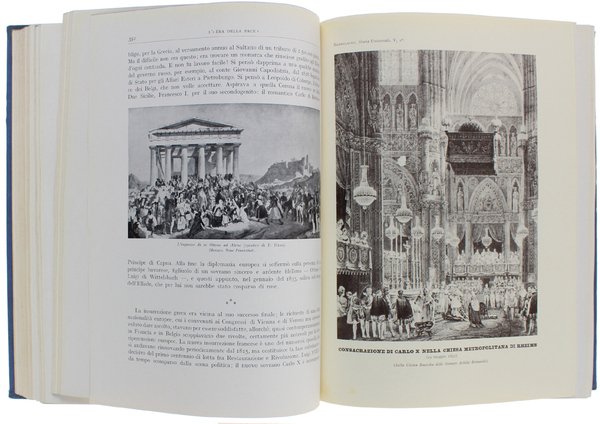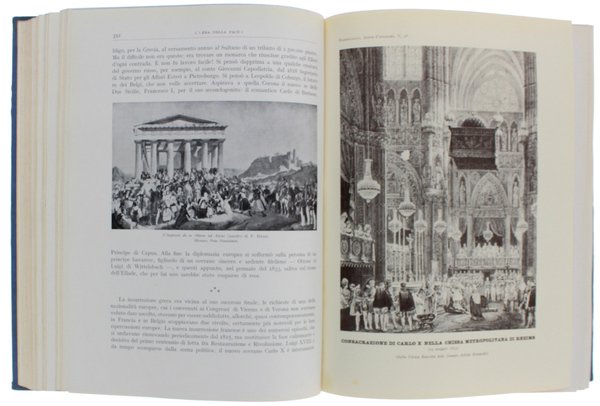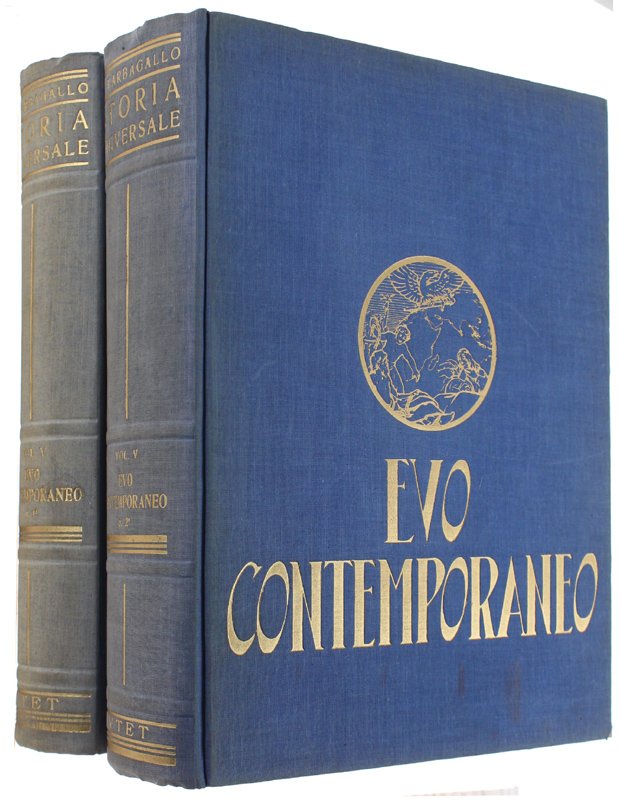 (Codice SK/0777) PRIMA EDIZIONE. Evo Contemporaneo completo in 2 tomi in 8° grande (26,5 cm), XV-704, XV-894 pp. Complessivamente con 1026 figure nel testo, 25 tavole fuori testo, 51 carte storico-geografiche. Ampio indice dei nomi in fine. Due consistenti volumi, buone legature editoriali tutta tela azzurra, titoli oro ai piatti e ai dorsi (lievemente scoloriti). Ottimo stato. ~~~ SPEDIZIONE IN ITALIA SEMPRE TRACCIATA