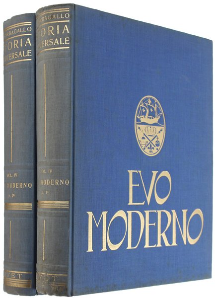 (Codice SK/0776) PRIMA EDIZIONE. Evo Moderno, completo in 2 tomi in 8° grande (26,5 cm), XVI-672, XII-680 pp. Con 854 figure nel testo, 17 tavole fuori testo, 31 carte storico-geografiche. Ampio indice dei nomi in fine. Due consistenti volumi, buone legature editoriali tutta tela azzurra, titoli oro ai piatti e ai dorsi (lievemente scoloriti). Ottimo stato. ~~~ SPEDIZIONE IN ITALIA SEMPRE TRACCIATA