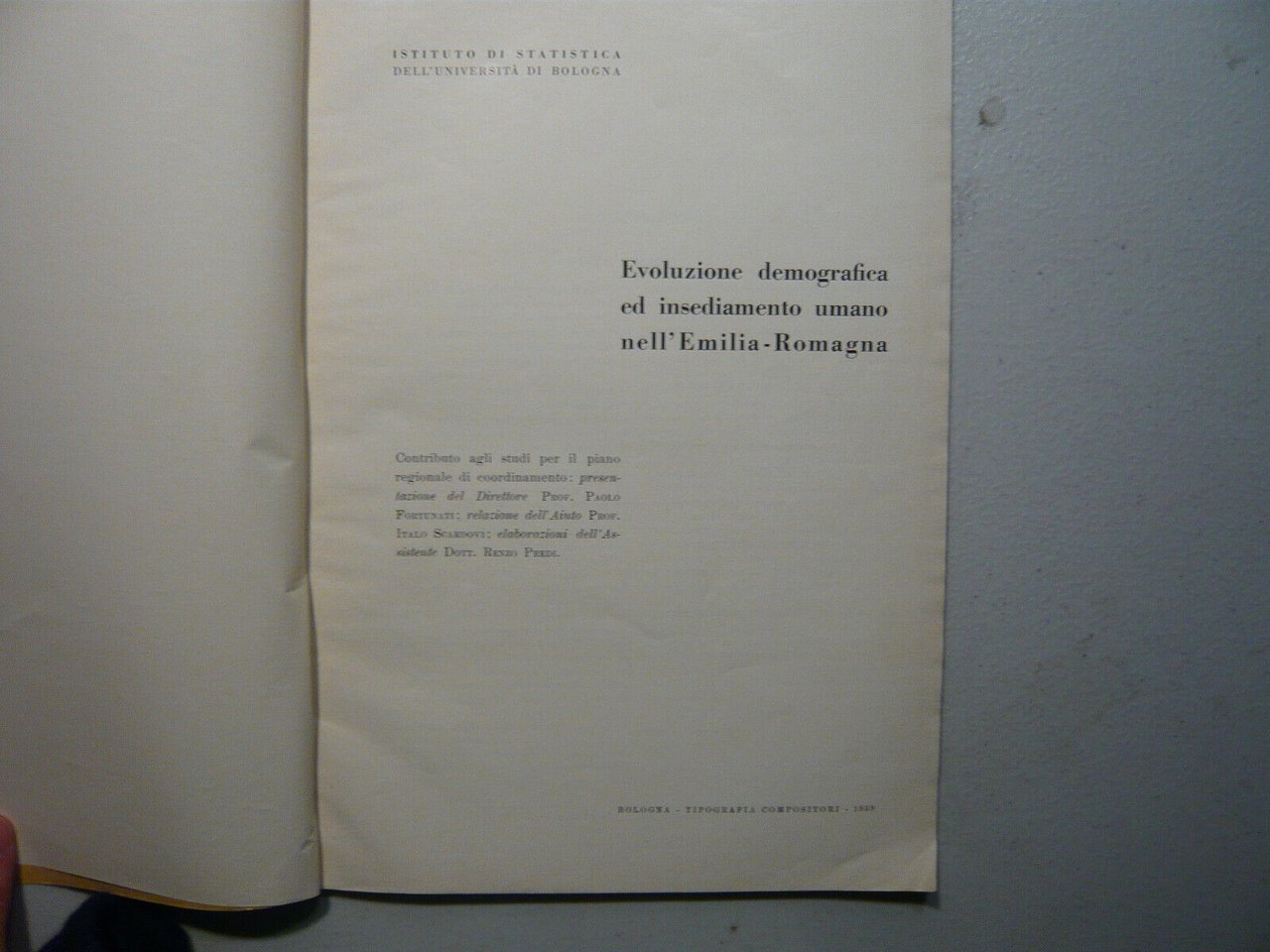 EVOLUZIONE DEMOGRAFICA ED INSEDIAMENTO UMANO NELL’EMILIA ROMAGNA, Bologna 1959