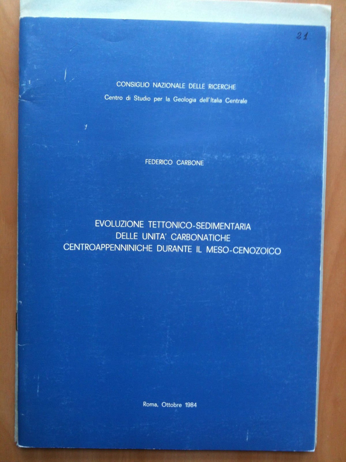 EVOLUZIONE TETTONICO-SEDIMENTARIA DELLE UNITA' CARBONATICHE CENTROAPPENNINICHE DURANTE IL MESO-CENOZOICOConsiglio Nazionale delle Ricerche Centro di Studio per la Geologia dell'Italia CentraleFederico Carbone - Roma, Ottobre 198440 pagine ed 1 tavola (208 g)E3646