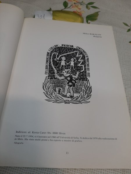 8°, con 270 ill. di ex-libris. Questa mostra di ex-libris dal mondo per Pinocchio è stata voluta e pensata per girare il mondo da cui proviene e per essere accolta, infine, nel Museo, Biblioteca annesso al parco di Pinocchio in Collodi.