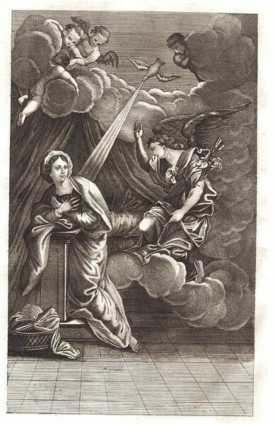 In-folio, cm. 40,2x28,5, legatura in piena pelle con titolo e fregi in ora al dorso e fregi in oro ai piatti, pp. XXX,452, CXI, 32,(28). Testo in rosso e nero e tre belle tavole incise in rame fuori testo. 'Annunciazione, nascita e crocifissione'. Piccola spellatura in basso all'angolo sinistro del piatto e marginali tracce del tempo e d'uso.