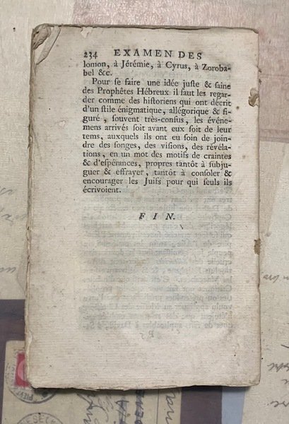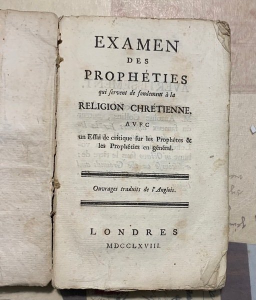 Examen des Prophéties qui servent de fondement à la Religion Chretienne, avec un Essai de critique sur les Prophètes & les Prophèties en général.