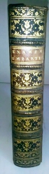 In-12, 17 x 10 cm. Londra ma Parigi, 1751. Due opere legate in una, con due frontespizi. La prima in tre parti, Londra ma Parigi 1751, di Henri Philippe de Chauvelin: pp. (4), 112, 175, 171. La seconda, Examen des observations, Bruxelles 1751, di polemista anonimo collegata alla precedente, pp. xviij, 157. Poco comune trovare le due opere legate insieme. Solida legatura coeva in vitello, dorso a cinque nervi con titolo in oro su tassello rosso, ornamenti floreali in oro. Ottimo stato di conservazione della legatura, piatti leggermente inariditi. Ottimo stato della carta. Piccole mancanze merginali senza danni al testo alla pagina 13. Timbro di antica biblioteca ecclesiastica al frontespizio. Testo in francese. In-12. Two works linked in one, with two title pages. The first: London but Paris, 1751, by Henri Philippe de Chauvelin, in three parts pp. (4), 112, 175, 171. The second, Examen des observations, Brussels 1751, by an anonymous polemicist connected to the previous one, pp. xviij, 157. It is rare to find the two works linked together. Fine contemporary French binding in calf, spine with gold title on red label, five bands, gold floral ornaments. Excellent state of preservation of the binding, slightly dried panels. Excellent condition of the paper. Minor lacks without damage to the text on page 13. Stamp of an ancient ecclesiastical library on the title page. French Text.
