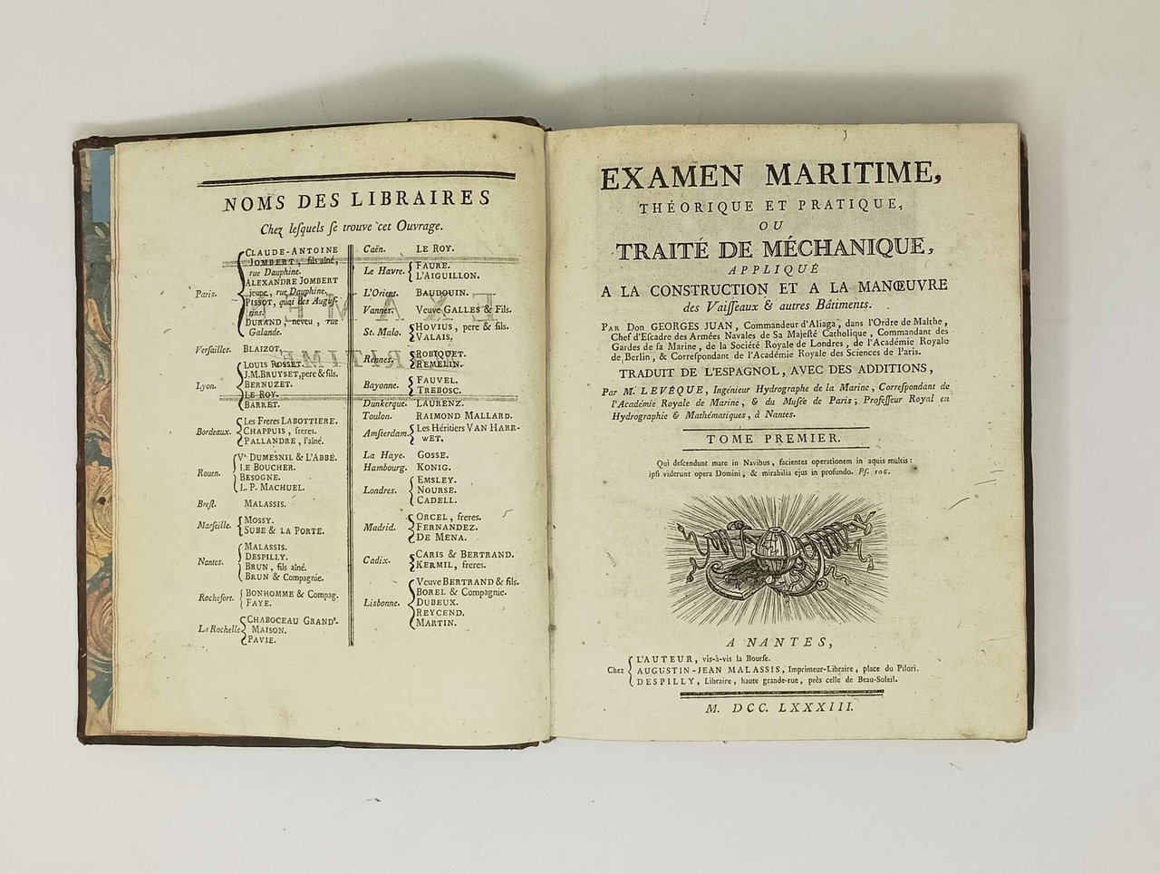 Examen Maritime, théorique et pratique, ou Traité de Méchanique. appliqué a la Construction et a la Manoeuvre des Vaisseaux & autres Bâtiments. Traduit de l'espagnol, avec des additions, par M Levéque