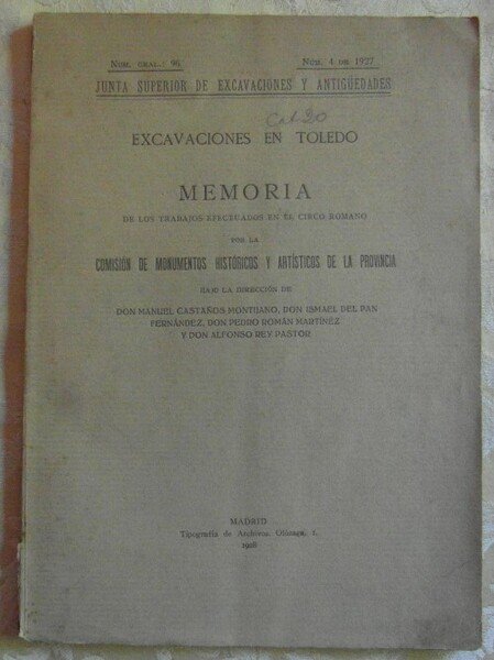 EXCAVACIONES EN TOLEDO. MEMORIA DE LOS TRABAJOS EFECTUADOS EN EL CIRCO ROMANO.
