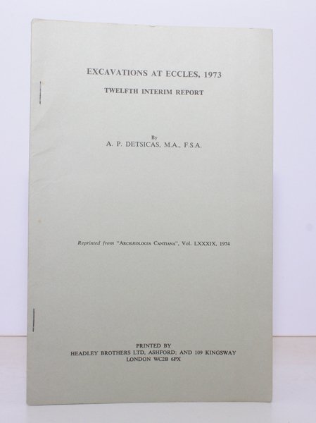 8vo., First Edition thus, with 4 plates on 2 and a large folding plan; original printed wrappers, wire-stitched as issued, a near fine copy. A PRESENTATION COPY FROM THE AUTHOR WITH HIS SIGNED HOLOGRAPH INSCRIPTION ON INSIDE FRONT WRAPPER. Offprinted from Archaeologia Cantiana, Vol. LXXXIX, 1974.