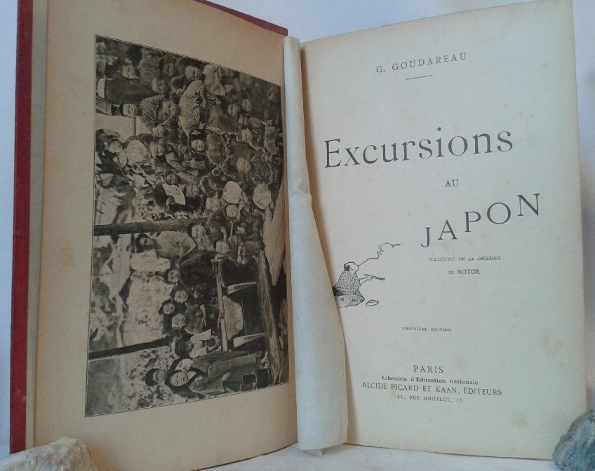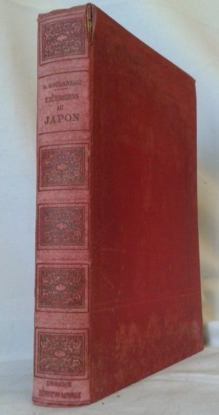 Volume in 4 legato in tela editoriale, titolo al dorso finemente ornato, sguardie, occhiello, antiporta figurata, frontespizio illustrato, prefazione, 306 pp., 42 tavole e illustrazioni intercalate nt. Bella edizione con fregi decorativi in stile giapponese che impreziosiscono i capitoli, si articola in viaggi di lunga durata, semplici passeggiate e traduzioni di opere giapponesi particolarmente interessanti, arrichita dalle belle incisioni in cornici floreali raffiguranti i posti visitati, i sistemi di trasporto e gli usi e costumi del luogo. Brunitura e fioriture della carta, lievi mende d'uso e piccole mancanze alla legatura leggermente lenta. Interessante e poco comune.
