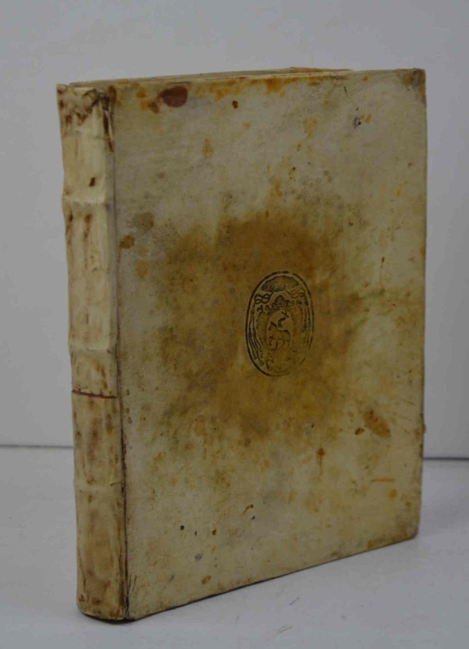 Cm. 20,5, pp. (16) 334 (6). Frontespizio in rosso e nero. Legatura coeva in piena pergamena rigida. Quest'ultima un po' macchiata, peraltro esemplare abbastanza genuino e ben conservato.