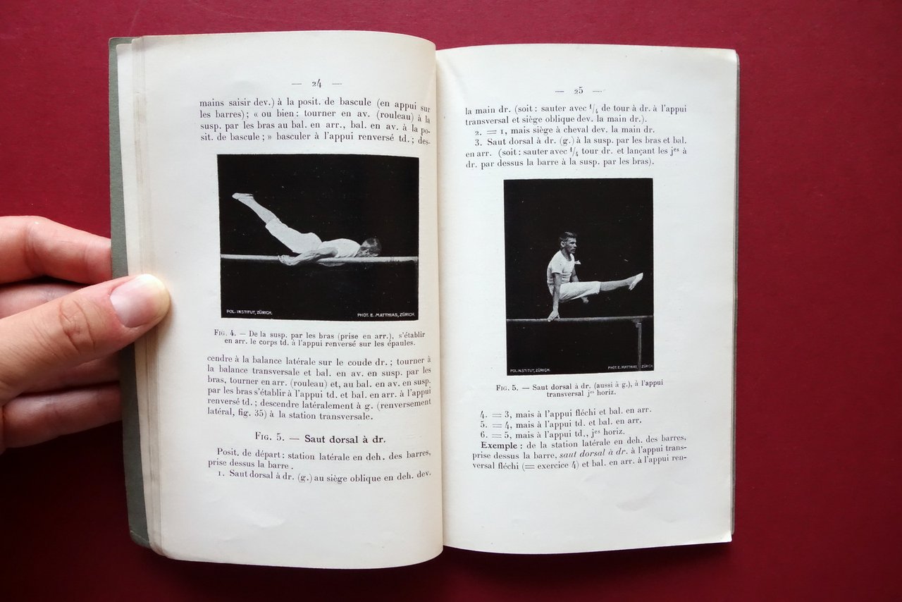Eugène Matthias, Exercices individuels aux barres parallèles Attinger Frères, Paris et Neuchatel 1912; cm 18x12; pp. 80 con 38 fig. in b/n nel t.; brossura ed. Al frontespizio firma a penna del precedente proprietario. Edizione francese. Condizioni di conservazione Buone condizioni con tracce d'uso; minimo ingiallimento ai margini delle brossure e al dorso, alcune pressoché trascurabili bruniture. Interni buoni. Con 38 figure in bianco e nero raffiguranti esercizi ginnici alle parallele. Edizione in lingua francese. SETT154.L24130 N P