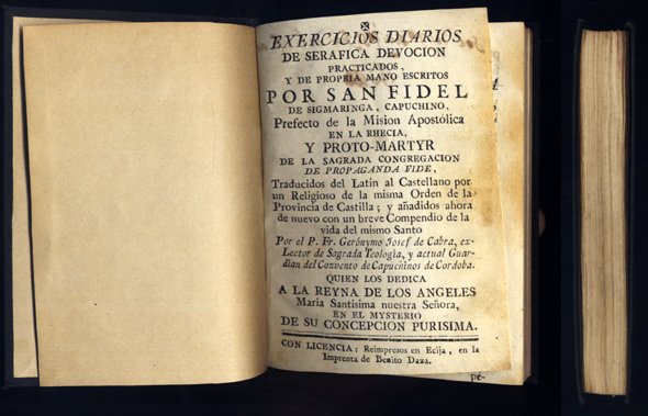 Exercicios diarios de Serafica devocion practicados, y de propia mano escritos por San Fidel de Sigmaringa, Capuchino, Proto-martyr de la sagrada Congregación de Propaganda Fide. Traducidos del latin al castellano por un Religioso de la misma Orden, y añadidos ahora con un.Compendio de la vida del Santo por Gerónymo Josef de Cabra.
