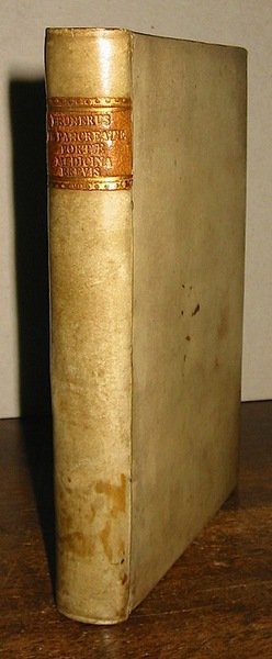 8vo (cm. 15.6), 8 cc.nn. (compresa una bella antiporta incisa su rame), 189 pp, 5 cc.nn. e 5 tavv. f.t. di cui 3 rip. Frontis. stampato in rosso e nero (unito) Porta Casparus, Medicina brevis exhibens Hominis Machinam, eyusque Morbum, Morbique Curationem paucis iisque selectis & rite paratis medicaminibus instituendam ad Mentem Neotericorum, ibidem, typis Frederici Haaring 1688, 96 pp, 4 cc.nn. Ottima legatura coeva in pergamena rigida con titolo su tassello in pelle al ds. Tagli rossi. Eccellente stato di conservazione. La prima opera in Blake, p. 68, la seconda in Krivatsy n. 9169.