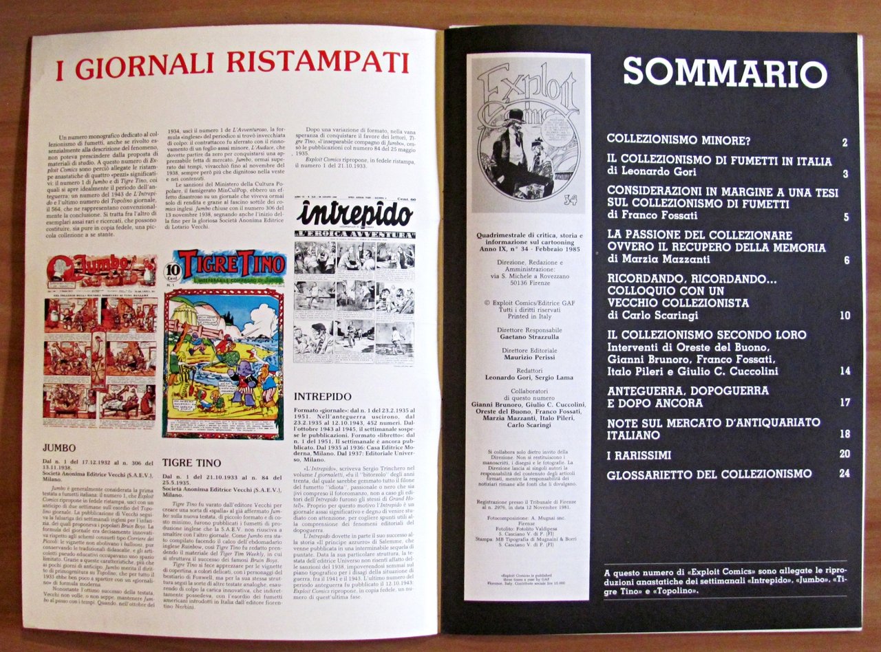 Quadrimestrale di critica, storia e informazione sul cartooning. Anno IX N.34 - Febbraio 1985. Illustrazioni e fumetti in b/n n.t. Numero dedicato al collezionismo di Fumetti. Ed. GAF - Firenze, Febbraio 1985. Brossura editoriale. 24,5x34,5; pp.26. Stato di Nuovo , Perfetto (Mint)