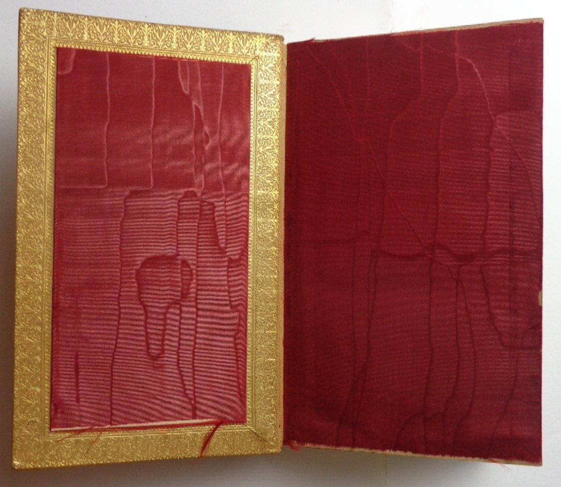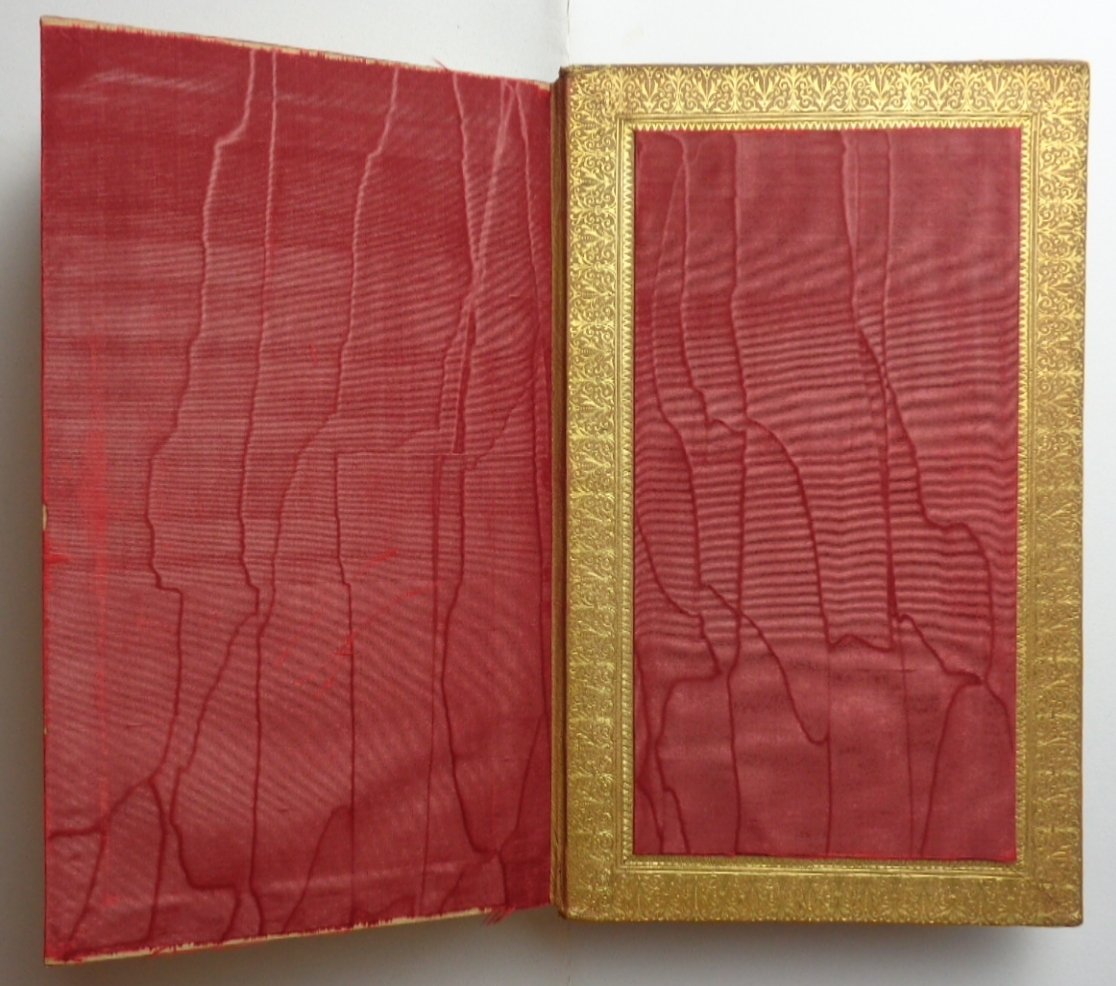 Un volume (13x22,5 cm) di XII-508 pagine. Legatura in piena pelle nocciola, due fili dorati di cornice ai piatti, al centro del piatto anteriore stemma dorato di PAPA LEONE XIII. Risguardie in seta porpora, con cornice di fregi dorati (un piccolo strappo); dorso a nervi con titoli dorati; tagli dorati. Ottime condizioni. Un timbro di biblioteca ecclesiastica dismessa alla pagina di titolo. Provenienza: Libreria Caldini, Firenze, 1986.