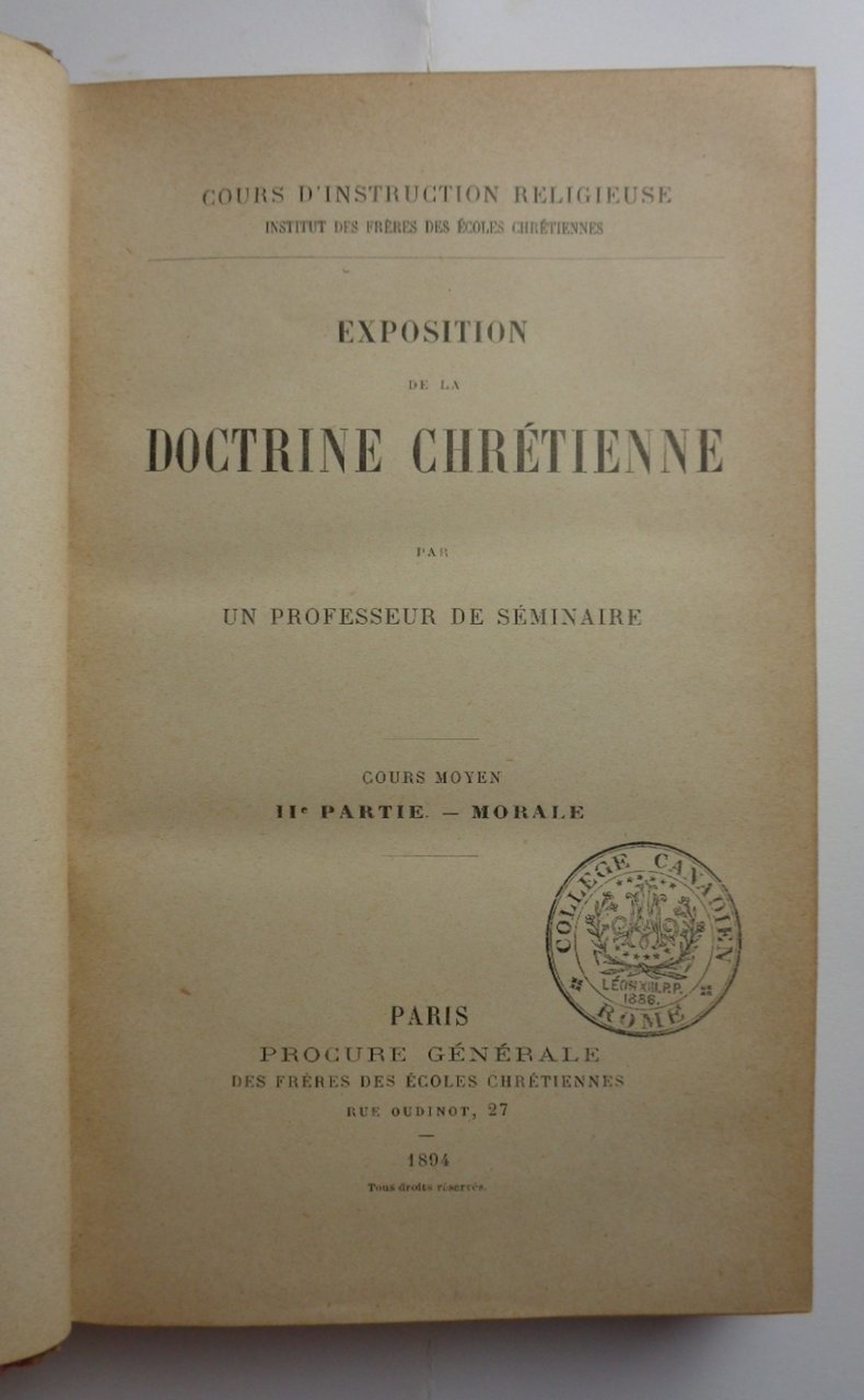 EXPOSITION DE LA DOCTRINE CHRÉTIENNE. Cours moyen, IIe partie: morale