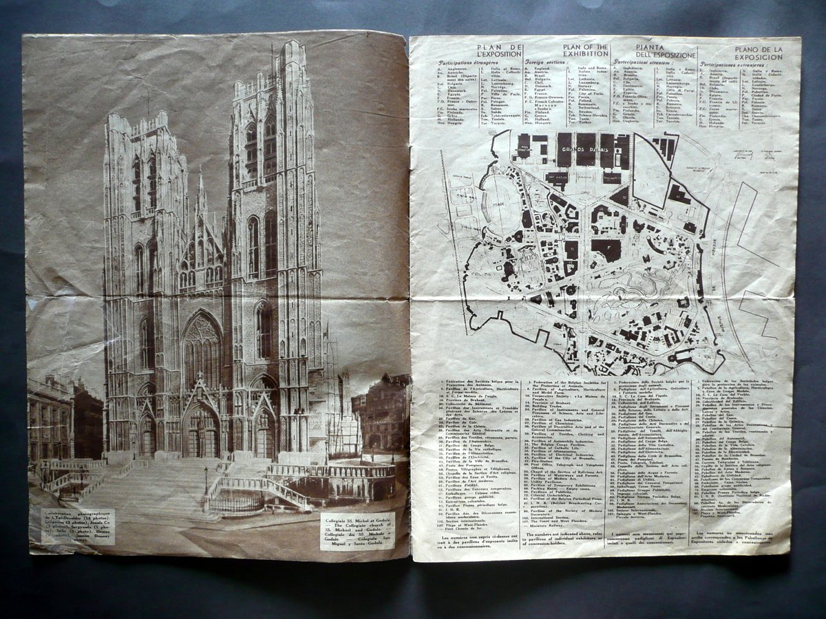 Rivista, Exposition Universelle et internationalle de Bruxelles Mars 1935 - N. 2 Pim - Services, Bruxelles 1935; cm 35,5x26,5; pp. non num. (pp. 16), con numerose ill. fotogr.; margine sup. della copertina con vecchio timbretto. Numero completo. Testi in inglese, francese, spagnolo, italiano. Condizioni di conservazione Esemplare ben conservato con tracce d'uso, leggera traccia di piega centrale di conservazione, alcune minime bruniture; angoli inf. dell'esemplare con tracce di pieghette; margine est. della rivista con uno strappetto di qualche cm all'estremità della piega conservativa, di cui solo quello al lato ant. della copertina è stato restaurato al retro mediante l'applicazione di nastro adesivo. Numero completo. Testi in inglese, francese, spagnolo, italiano. SC03.D13075 N F