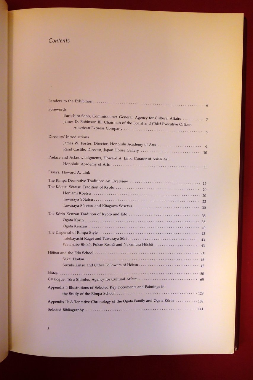 Honolulu Academy of Arts (organized by), in cooperation with the Agency for Cultural Affairs, Tokyo; 1980; cm 30x21,5; pp. 144 con numerosissime ill. in b/n e a colori; cartonato ed. telato con titolo impresso al dorso; sovraccoperta ed. ill. a colori.