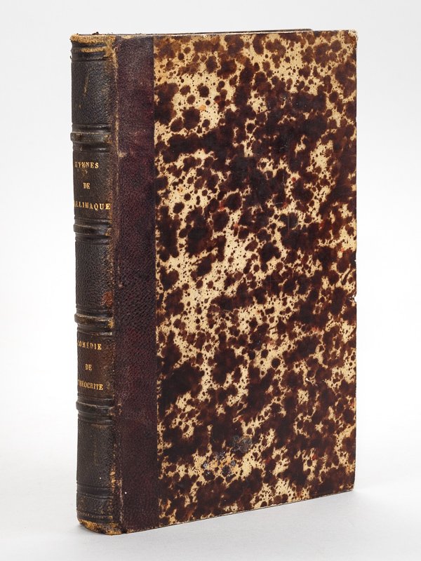 1 vol. in-8 relié demi-chagrin violine, dos à 4 nerfs, Dezobry, E. Magdeleine et Cie, Paris, 1842, viii-267 pp. (Hymnes de Callimaque) ; Académie impériale des sciences, belles-lettres et arts de Bordeaux, Séance solennelle du 9 décembre 1858, G. Gounouilhou, Bordeaux, 1859, 30 pp. (Musée d'Alexandrie) ; Hachette et Cie, Paris, F. Hemery, Dijon, 1859, 67 pp. (Syracusaines) ; s.l.n.d. (1858), 14 pp. (Banquet). Ex-libris du savant et critique littéraire Ferdinand Colincamp. Envoi d'Alfred de Wailly à Colincamp (en garde de sa traduction de Callimaque). Intéressant recueil factice d'une recension érudite et des trois pièces analysées. Originellement au format in-12, les Hymnes de Callimaque ont été encollés sur marge pour les adapter au format du recueil. Etat très satisfaisant (rel. lég. frottée).