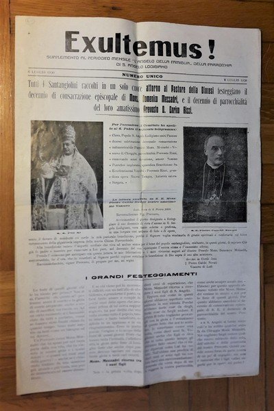 EXULTEMUS! Supplemento al periodico "L'angelo della famiglia" della Parrocchia di S. Angelo Lodigiano. Numero Unico 1930