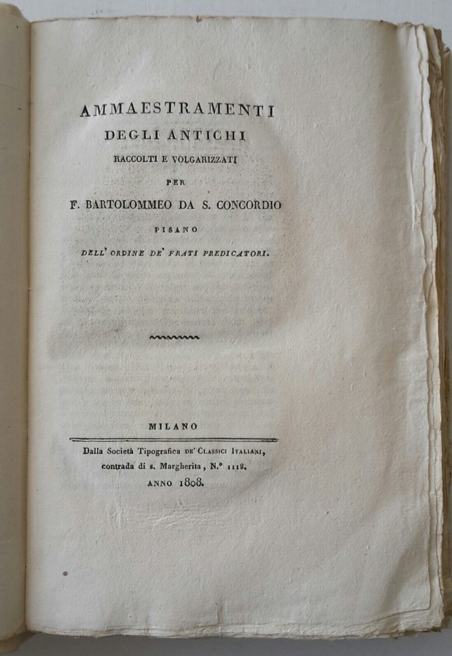 F. BARTOLOMMEO DA S. CONCORDIO AMMAESTRAMENTI DEGLI ANTICHI 1808