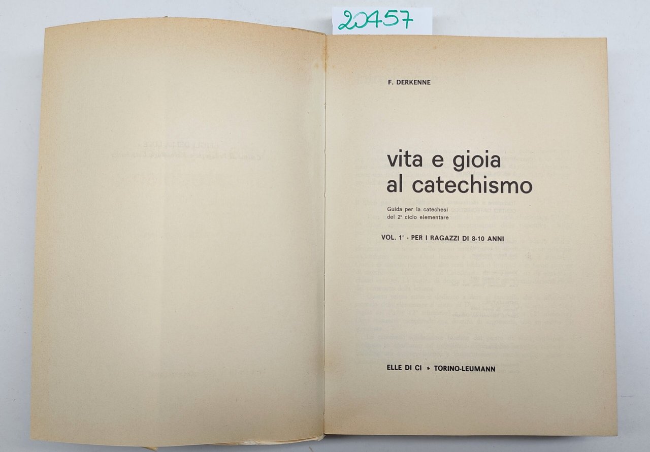F. Derkenne Vita e gioia al catechismo volume 1 per ragazzi da 8 a 10 anni ldc 1965