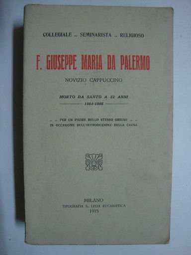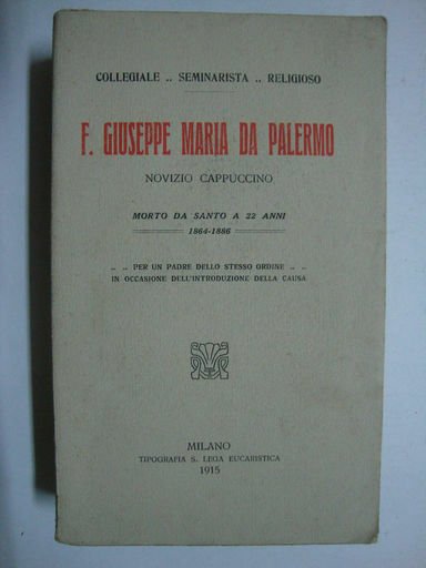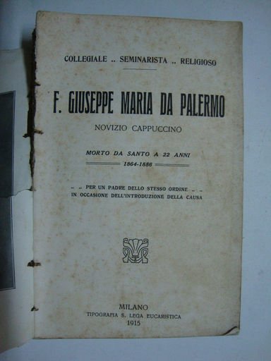 Biografia del collegiale, seminarista, religioso, morto da santo a 22 anni, scritta da un padre dello stesso ordine, in occasione dell'introduzione della causa (1864 - 1886); con tavv.fotogr.ft. in bianco e nero tra cui vari ritratti del santo (61f).