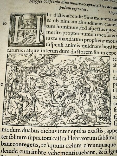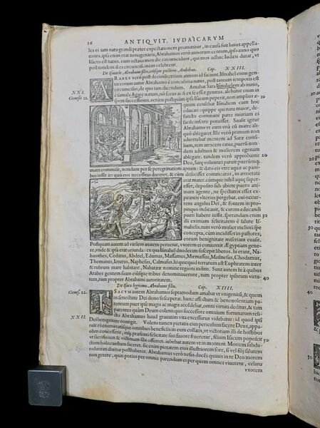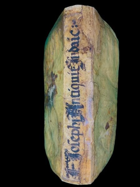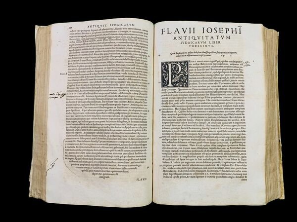 (12), 702, (30) pp. Legatura originale in piena pergamena floscia con titolo manoscritto in ele gante grafia coeva al dorso. Vecchio restauro alla pergamena dei piatti con qualche integrazione ai piatti. Un leggero alone al margine esterno delle prime 20 carte, mai intensa o fastidiosa (per la massima intensità si veda il frontespizio). Un leggerissimo alone alle ultime 4 carte, non fastidioso o significati. E nel complesso, esemplare in buone condizioni di conservazione, arricchito dal bel titolo al dorso. Antiche note di proprietà privata la frontespizio, alcune anticamente cancellate ma leggibili: Livi Muse Petri, Stelle Luce; Ex lib. Bart. De Rossi ed una leggibile Ex Libris De Rossi. Piccola ed antica striscetta di rinforzo ed integrazioe al recto del margine esterno bianco del frontespizio. Testatine ed iniziali animate xilografiche. Alcune antiche note manoscritte al margine esterno di alcune pagine. Edizione magnificamente illustrata dalle incisioni del celebre incisore, orafo, pittore, scultore e medagliere francese Pierre Woeiriot de Bouzey (15321596?). Nel testo presente anche il De impero rationis a cura di Erasmo. Edizione fra le più rare, stampata dagli eredi Giunta a Lione, illustrata da Pierre Woeiriot de Bouzey, di questa celeberrima opera del grande scrittore, storico, politico e militare romano di origine ebraica, Tito Flavio Giuseppe (Gerusalemme, 37-38 circa Roma, 100 circa). Flavio, appartenente ad una famiglia della nobiltà sacerdotale israelita, imparentata con la dinastia degli Asmonei, ricevette un'educazione tradizionale ebraica ma fortemente influenzata dalla cultura latina e greca. In giovane età fu vicino ai farisei, pur essendo ostile ai nazionalisti ebrei ed in particolare agli zeloti. Durante la Prima Guerra Giudaica del 66 fu tra i capi militari delle forze ribelli in Galilea. "Quando i ribelli, asserragliati dai romani a Iotapata, si resero conto dell'imminente sconfitta, pensarono subito al suicidio, pur di non cadere prigionieri nelle mani del nemico, ma Giuseppe li convinse dell'immoralità di tale gesto e propose in alternativa la possibilità che, a turno, ognuno di loro togliesse la vita all'altro; con un particolare e complesso stratagemma (conosciuto oggi in ambito matematico c ome il Problema di Giuseppe) riguardante l'ordine di questo ciclo di morti, riuscì a fare in modo da restare l'ultima persona in vita del gruppo di ribelli e, invece di uccidersi, si consegnò spontaneamente ai Romani. Durante l'incontro con il comandante delle forze romane in battaglia, Tito Flavio Vespasiano, Giuseppe gli predisse che sarebbe diventato imperatore "In Antichità giudaiche Flavio Giuseppe racconta la storia del popolo ebraico dalle origini fino all'epoca immediatamente precedente la guerra giudaica del 66-70. Quest'opera contiene preziose notizie relative ai movimenti religiosi del giudaismo del I secolo, come gli Esseni, i Farisei e gli Zeloti. Il Libro XX (da 197 e seguenti) contiene il racconto della dinastia di Anano e del martirio di Giacomo, fratello di Gesù "soprannominato il Cristo" (Libro XX, 200). Essa contiene anche il cosiddetto Testimonium flavianum, ovvero un breve passo che menziona la predicazione e la morte di Gesù, confermando sostanzialmente il resoconto dei Vangeli. Benché questo passo sia considerato da alcuni storici, tra i quali E. Schürer e H. Chadwick, in tutto o in parte, una falsificazione inserita in epoca cristiana, esso fu conservato nell'originale greco da parte della Chiesa cristiana; mentre uno studio del 1971 di Shlomo Pines dell'Università Ebraica di Gerusalemme su un codice arabo del X secolo sembra confermare che si tratti di un riferimento al Gesù Cristo dei Vangeli.". Magnifica edizione illustrata e fra le meno comuni del cinquecento. Rif. Bibl.: ICCU IT\ICCU\BVEE\012675; Biblioteca digital Memoria de Madrid, B 23924; BHM.Catálogo de incunables y obras s. XVI, 2002, 292.