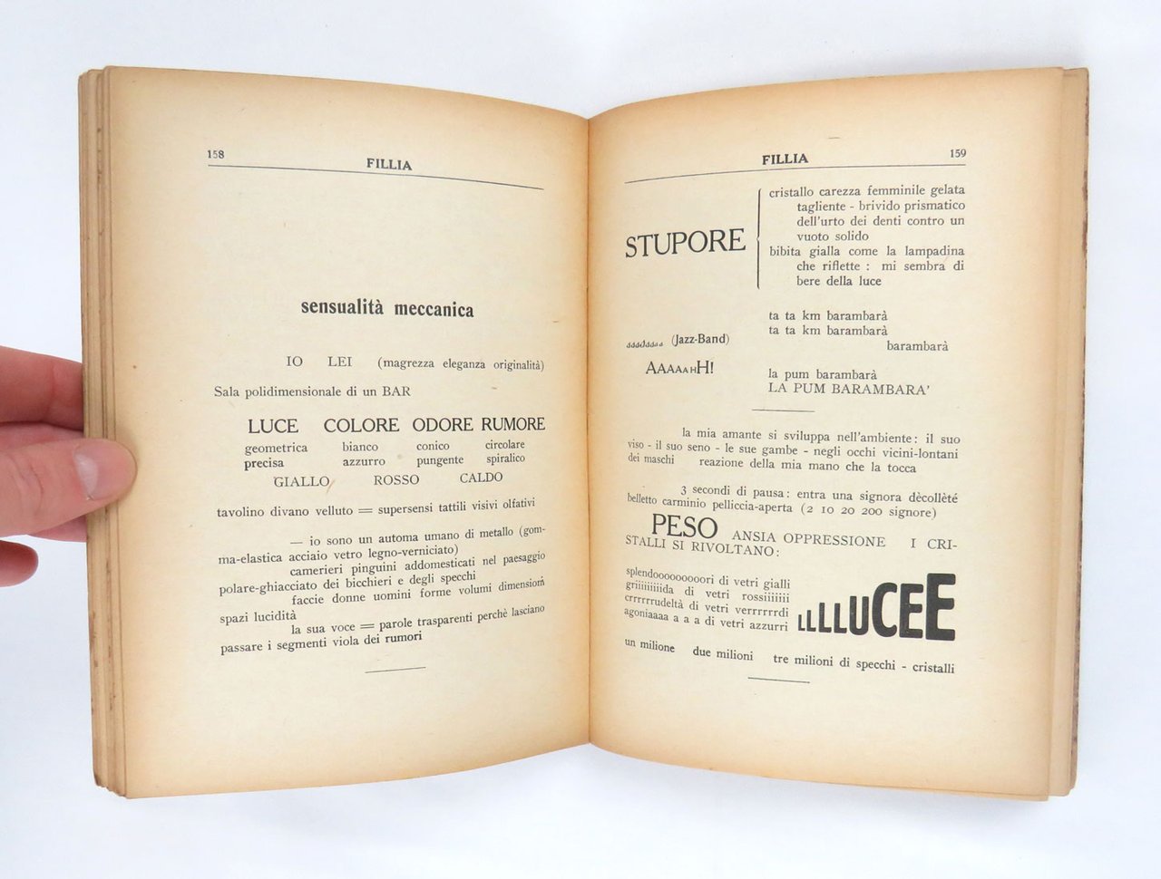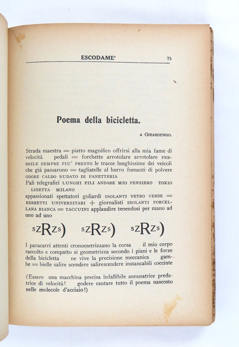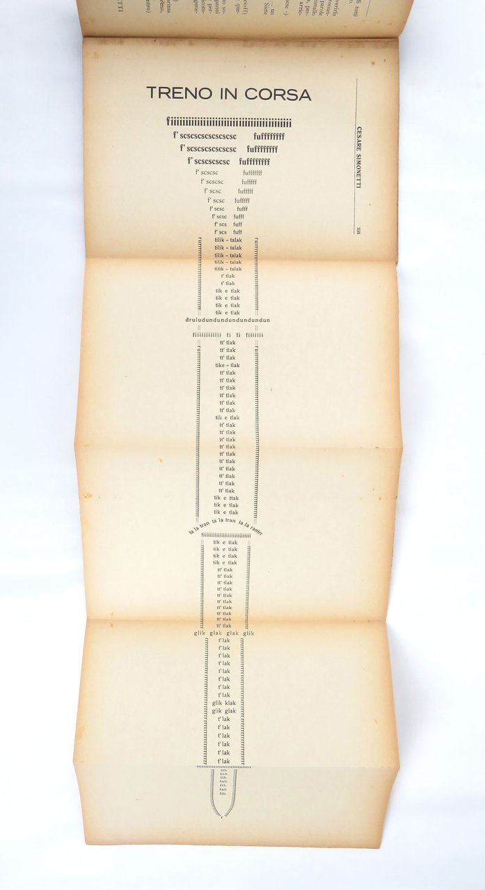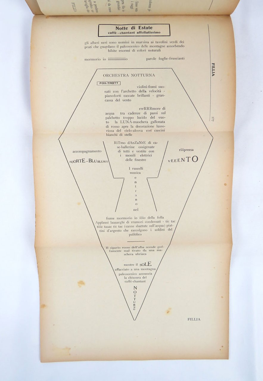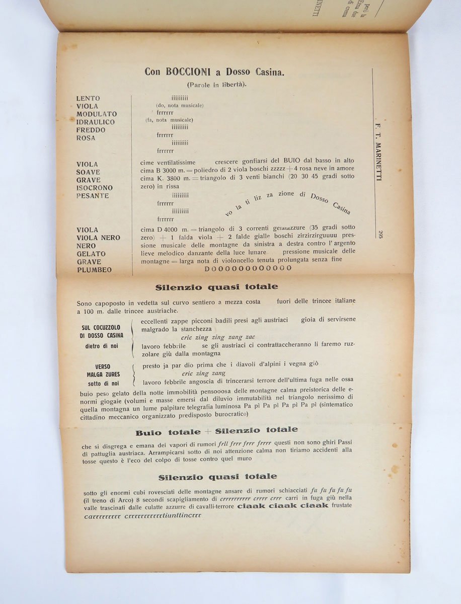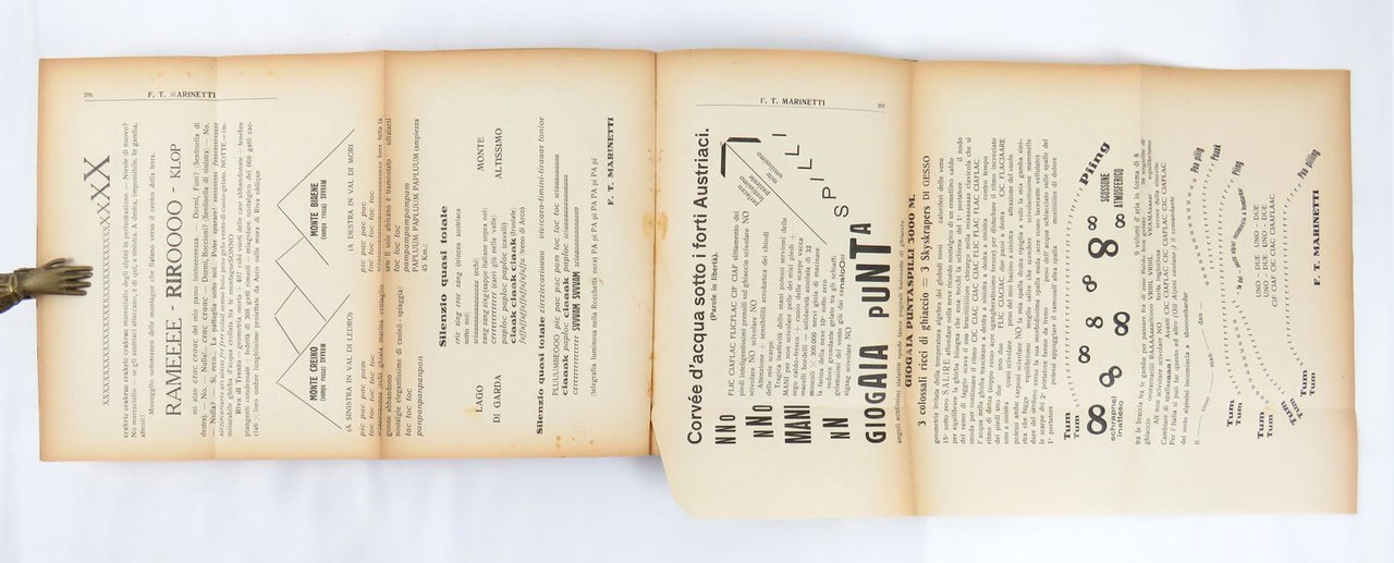 - pp. 361 [1], con cinque carte più volte ripiegate con tavole parolibere, comprese nella numerazione.
