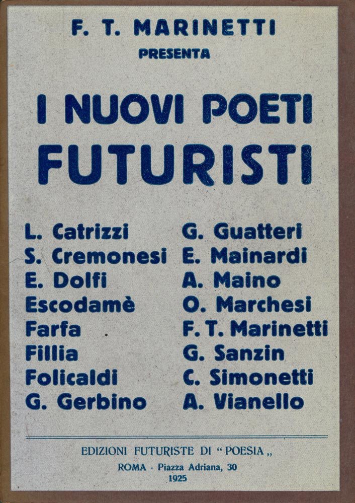 - Aa. Vv. (Marinetti, Filippo Tommaso - Catrizzi, Loris - Cremones, E, Silvio - Dolfi, Mario - Escodamè - Farfa - Fillia - Folicaldi, , Alceo - Gerbino, Giovanni - Guatteri, Giuseppe - Maino, Angelo, - Mainardi, Enzo - Marchesi, Oreste - Sanzin, Bruno - Simonetti, , Cesare - Vianello, Alberto)