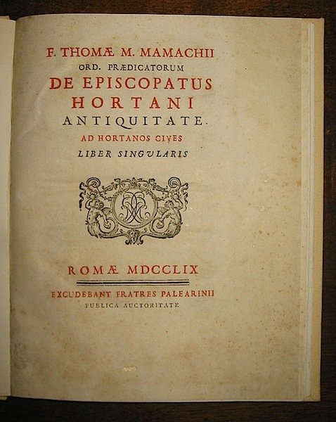 F. Thomae M. Mamachii ord. praedicatorum De Episcopatus Hortani antiquitate ad Hortanos cives Liber singularis