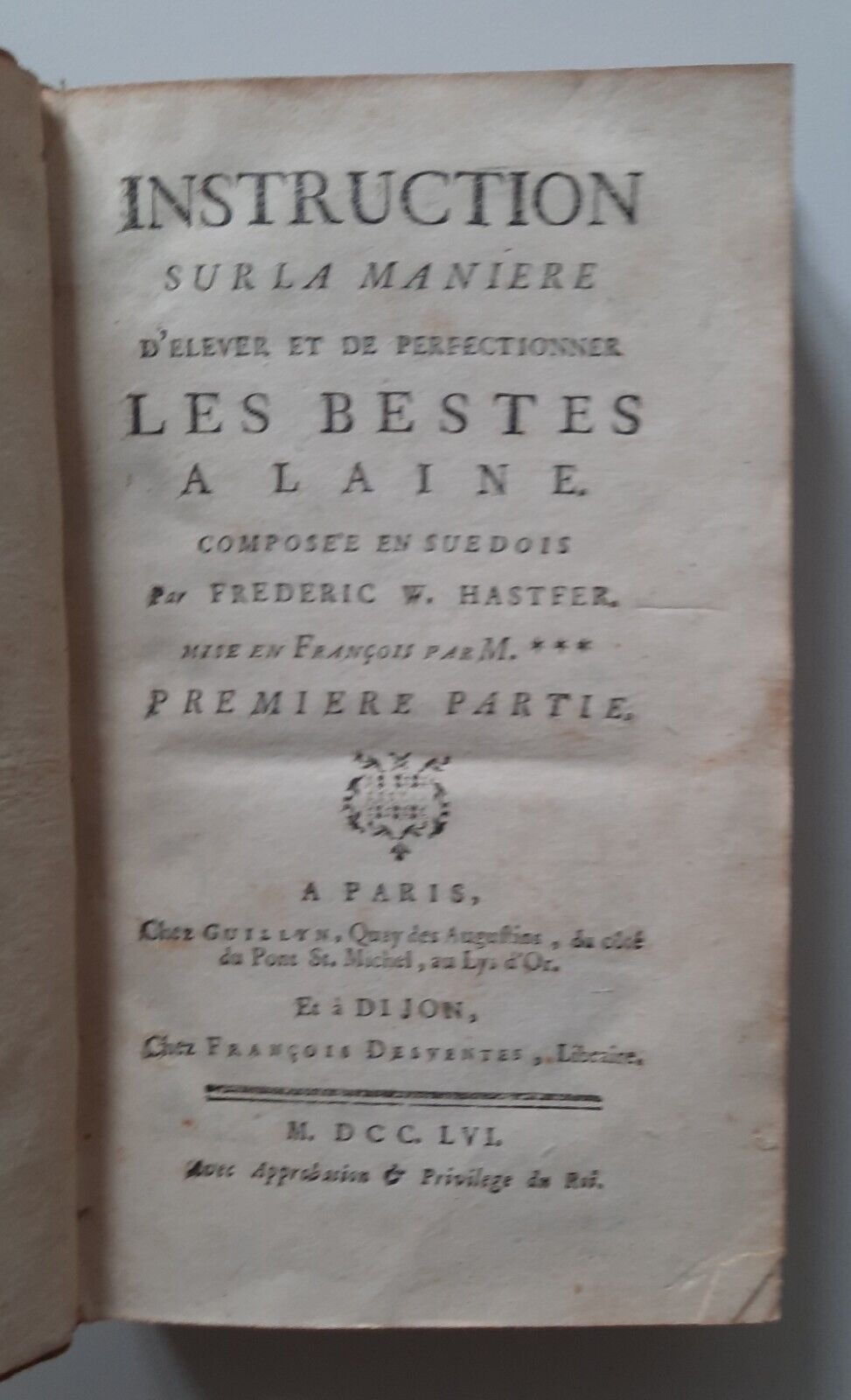 F.W. HAFSTER INSTRUCTION SUR LA MANIERE LES BESTES A LAINE F. DESVENTES 1756
