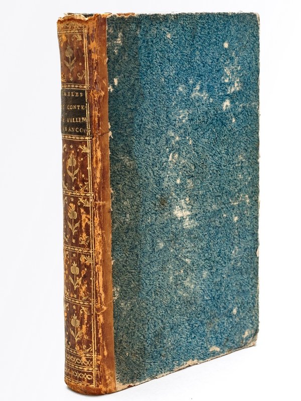 1 vol. in-8 reliure de l'époque demi-basane marron, dos lisse orné, Chez L. Cellot, Amsterdam, Paris, 1777, 136 pp., 2 ff., 124 pp. et Chez L. Cellot, A Londres et se trouve à Paris, 1778, 245 pp. (y compris faux-titre et titre) Exemplaire de toute rareté de l'édition originale des Fables, et de l'édition originale des Contes et Nouvelles, de François Jean Willemain d'Abancourt (1745-1803). Homme de lettres et important bibliophile, ses travaux furent souvent insérées dans les livraisons du Mercure. Etat satisfaisant (coiffe sup. arasée, coupes frottées, bon état par ailleurs).