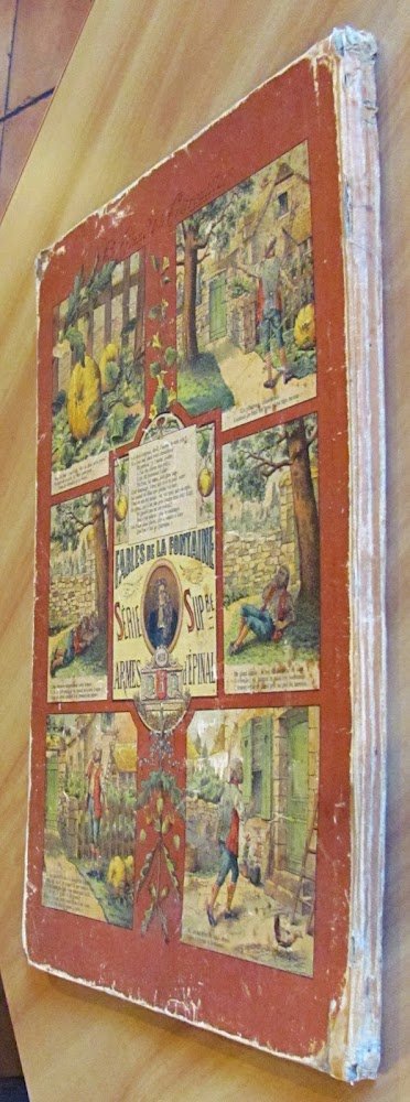25 splendide tavole tutte di favole diverse di Epinal. Editeurs Pellerin & Cie. - Paris, s.d. 1900 ca. Cartonato editoriale con dorso in tela. Copertine con alcune imperfezioni del tempo (come da foto) e spellature alla cerniera anteriore, ma interno e tavole freschi e puliti. 34x46,5; pp.26. RARO e in BUONISSIMO STATO , Molto buono (Very Good)